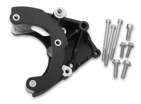 - • Bolt-on solution to relocate A/C compressor on engines using a GM Corvette accessory drive system
