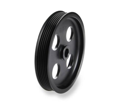 - 6-rib billet aluminum pulley with black anodized finish – sized for proper pump speed